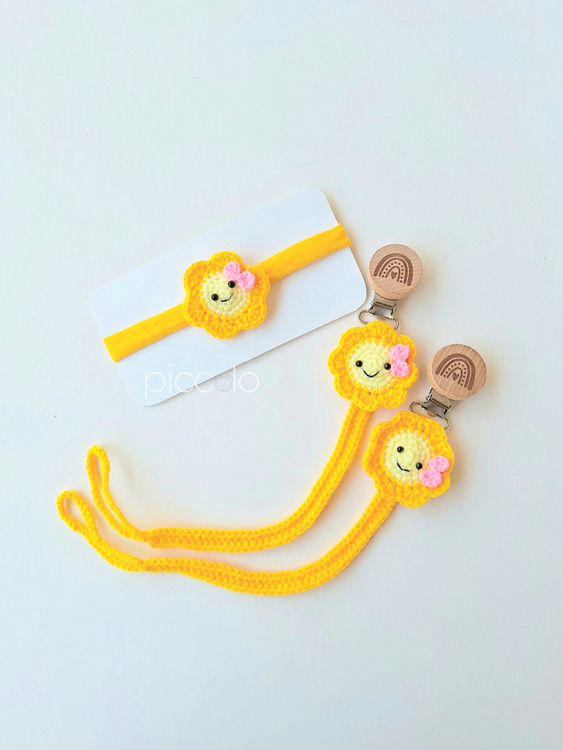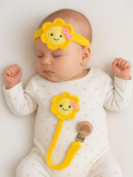 ست بند پستونک و هدبند بافتنی